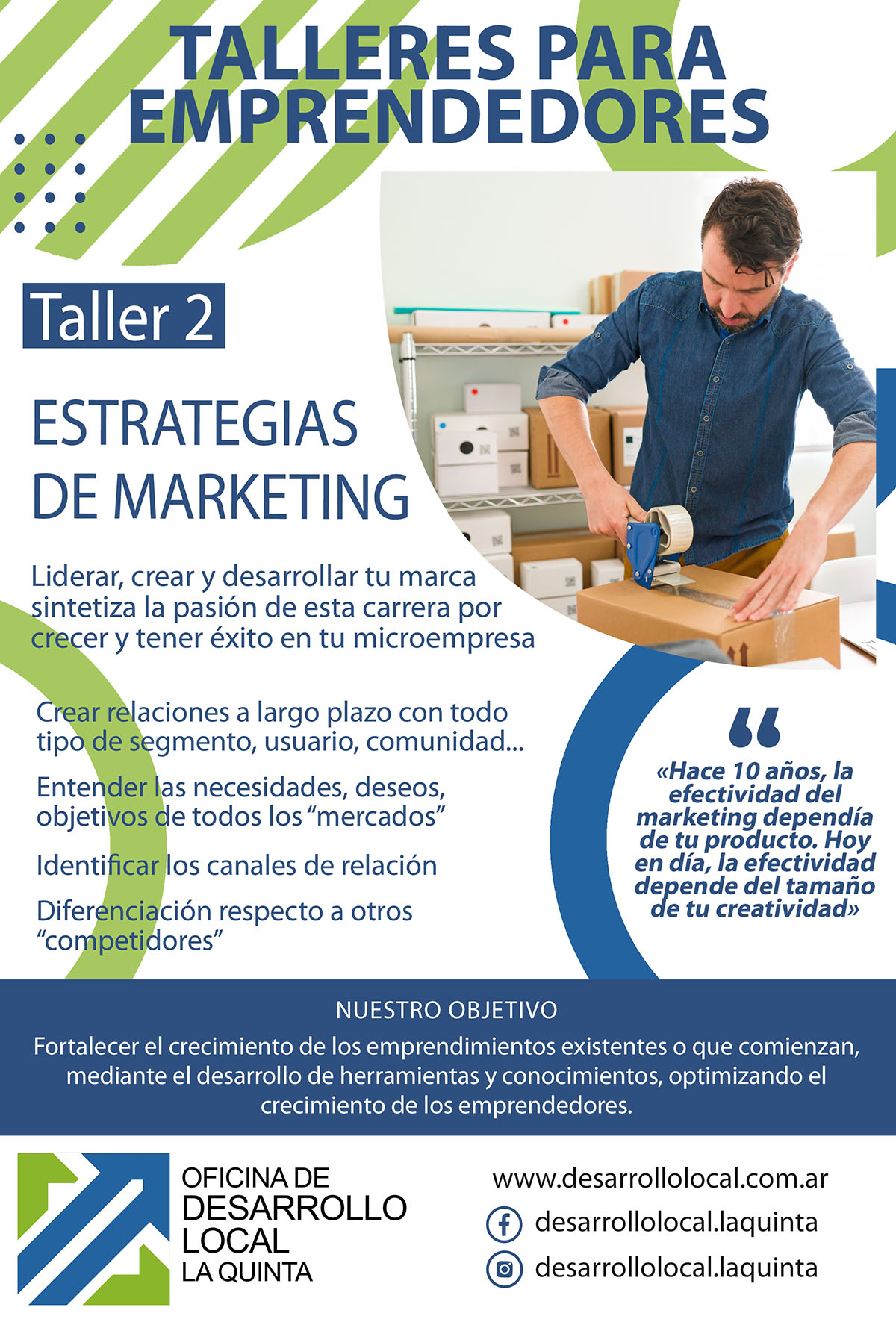 La Oficina de Desarrollo Local continúa su compromiso de empoderar a los emprendedores locales al ofrecer un enriquecedor taller de Marketing Estratégico. Durante varios días, este taller reunió a una audiencia ávida de conocimientos, compuesta por emprendedores de diversos sectores, en busca de mejorar sus estrategias de marketing y promoción.